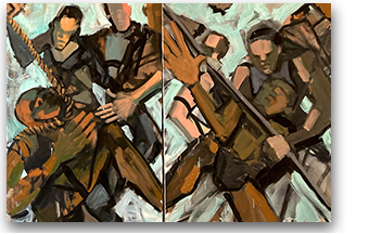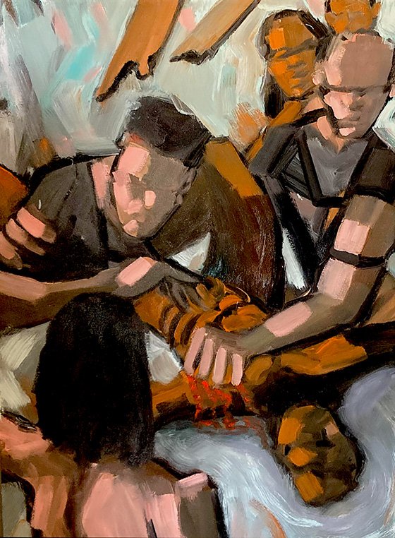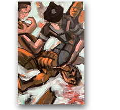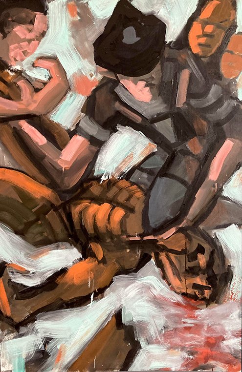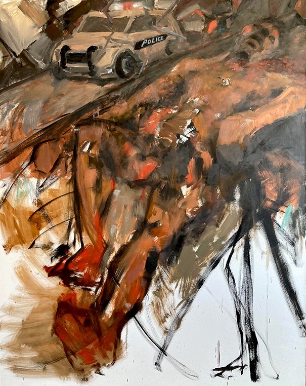 As a visual artist releasing my anger, outrage and sadness has resulted in these canvases. This is a creative eruption of deep and vast emotional frustration. These new works are titled “OUR STRUGGLE”.>