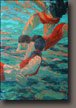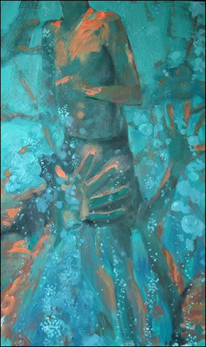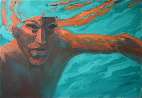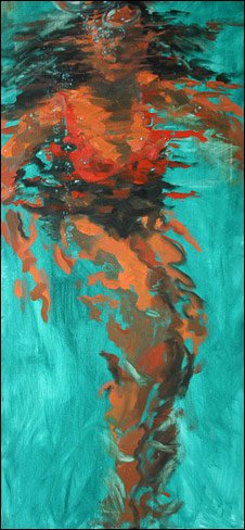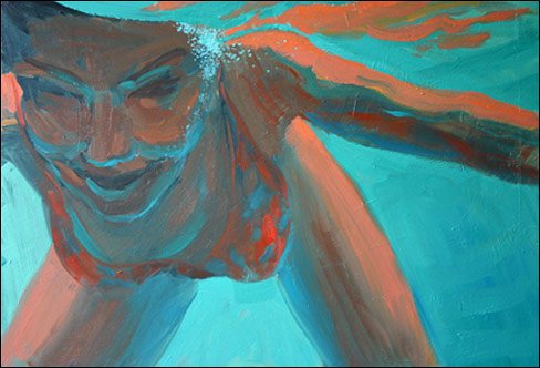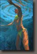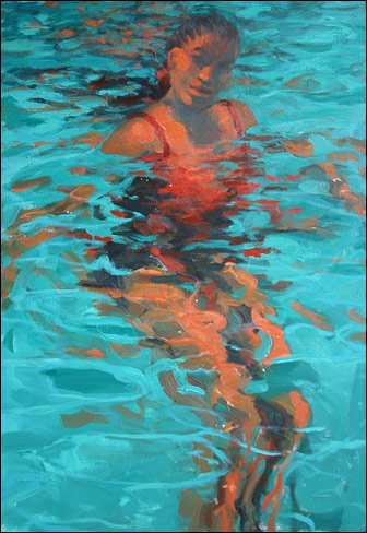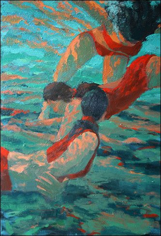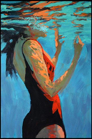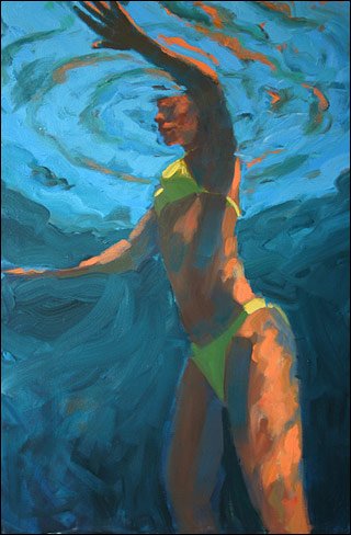 The crystal clear waters of the British Virgin Islands and the turquoise waters of the Bahamas have been the primary inspiration for this show. My past work has dealt with the light, color, and the figure in the landscape. These paintings carry the similar interest of the figure in the reflected light of water.